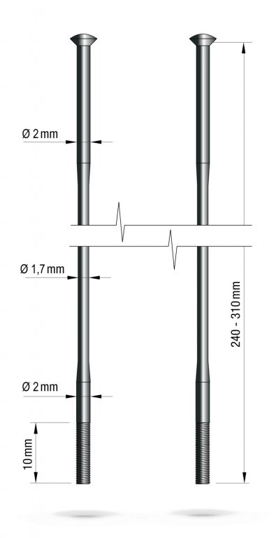 Rozměr paprsku: 2/1,7/2 mm, hmotnost: 4,9 g (při délce L = 260 mm)