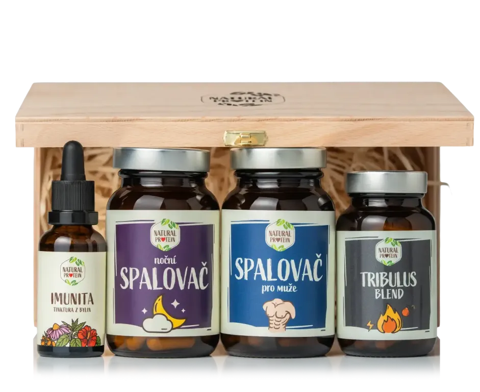 Sixpack jako Spartakus, lepší výkon a výdrž nejen ve fitku (mrk mrk), dostatek testosteronu, zdravý sexuální apetit, plodnost a silná imunita. To všechno jsme ukryli do chlapského zvýhodněného balíčku Pánem svého těla. Ve stylovém dřevěném boxu objevíte 4 produkty v přírodní kvalitě, které se perfektně doplňují a myslí na potřeby mužského těla – denní a noční spalovač tuků, nakopávač mužských hormonů Tribulus Blend a silná tinktura ze čtyř bylin pro podporu obranyschopnosti organismu.