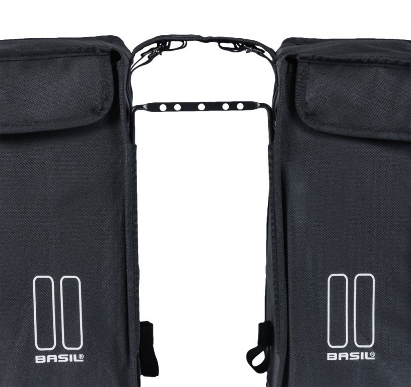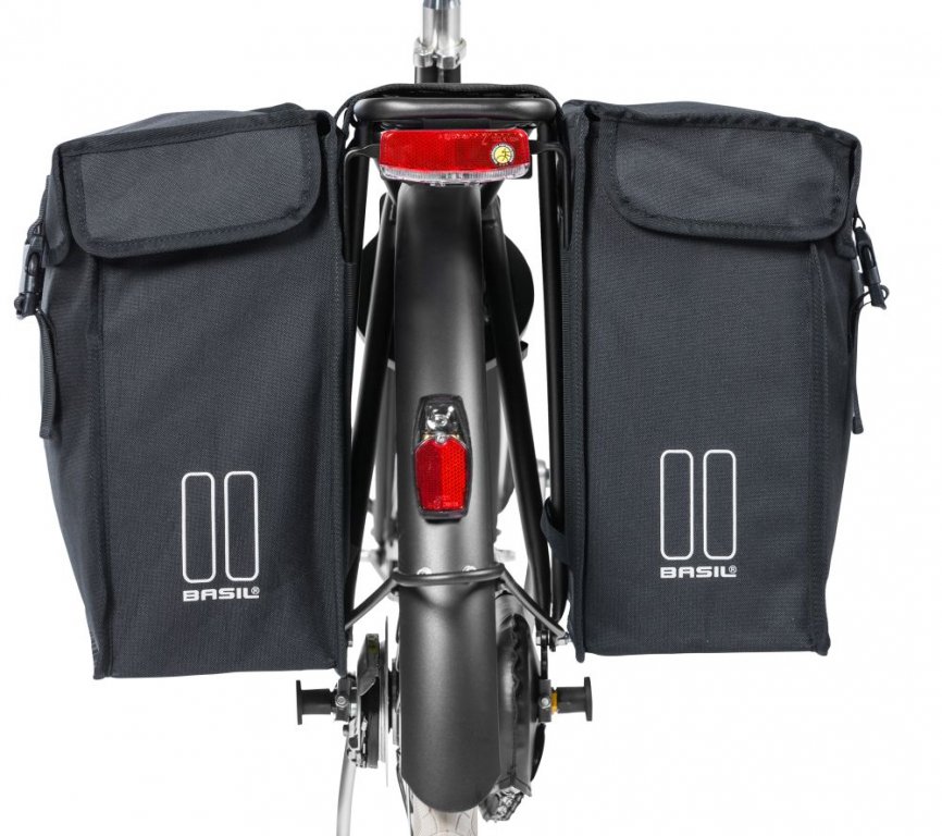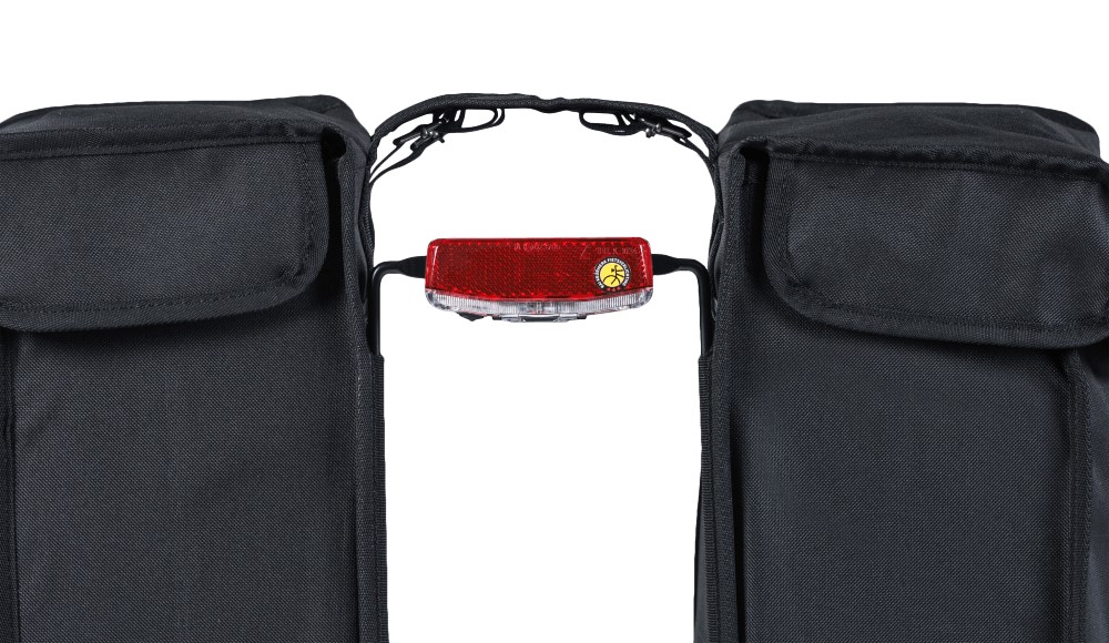 S praktickým držákem vzdálenosti Basil můžete bezpečně jezdit se svými dvojitými cyklistickými taškami na kole, aniž by se tašky zachytily do výpletů. Na rozpěrku držáku lze namontovat zadní světlo.
