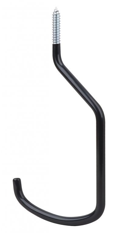 držák kola na strop, pověšení za přední nebo zadní kolo, gumová ochrana háku, ( 1x hmoždinka součásti balení ), nosnost 30 kg, materiál Fe, hmotnost 350g, výška držáku bez závitu 23cm, průměr 10mm.