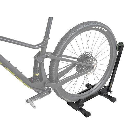 Odolný skládací stojan pro skladování a vystavování jízdních kol. Odpružené rameno stabilizuje zadní kolo a nastavitelný válec na pneumatiky pojme 20mm silniční pláště až po 3,25“ široké pláště horských kol. Vhodný pro většinu silničních, horských nebo elektronických kol.