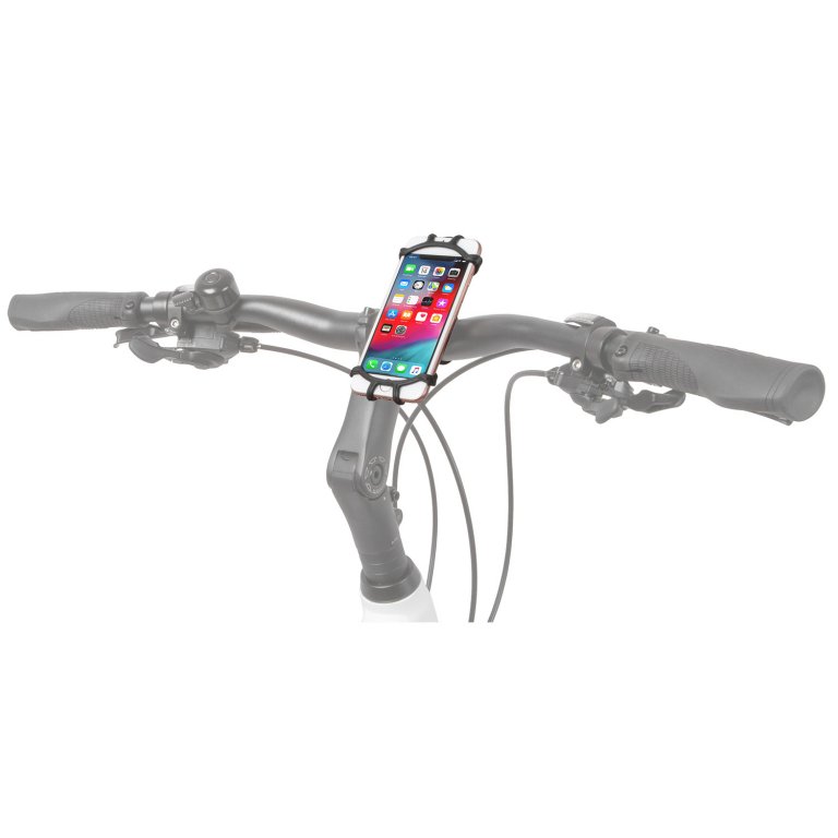 Držák telefonu s objímkou Vhodný pro telefony 3,5-6,5'' Materiál: silikon Otočný připínací klip ( průměr 15-45mm) Délka: 130mm Šířka: 60mm Otočný průběžně až o 360° Montáž bez použití nářadí Hmotnost: 68g Balení: originální M-Wave krabička