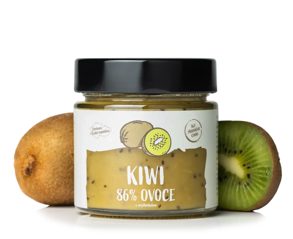 Kiwi džem bez přidaného cukru potěší bohatou chutí a vůní kiwi, aniž by zatížil vaše zdraví. Vyrobili jsme jej totiž tak, že neobsahuje přidaný cukr. Mlsat tak můžete úplně bez výčitek a to bez ohledu na to, zda si džemem vylepšíte výtečné lívance nebo jej vmícháte do jogurtu. Dopřejte si pravou lahůdku z exotického ovoce v podobě našeho kiwi džemu bez přidaného cukru a navíc s vědomím, že pro své tělo děláte to nejlepší.