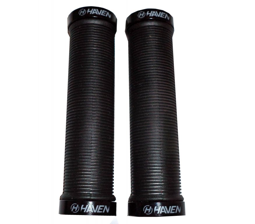 Gripy použitelné i bez nutnosti rukavic díky jemnému a příjemnému drážkování, které tlumí vibrace a zvyšuje jistotu úchopu Dvě objímky proti protočení Materiál: guma Délka: 130 mm Barva: černá, černé objímky