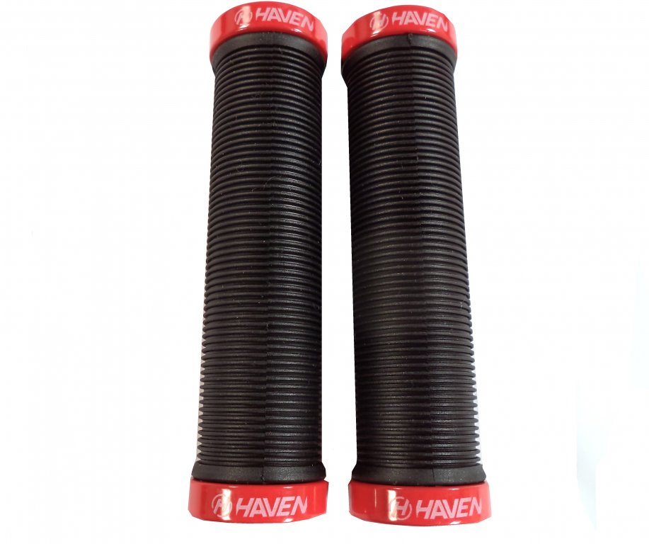 Gripy použitelné i bez nutnosti rukavic díky jemnému a příjemnému drážkování, které tlumí vibrace a zvyšuje jistotu úchopu Dvě objímky proti protočení Materiál: guma Délka: 130 mm Barva: černá, červené objímky