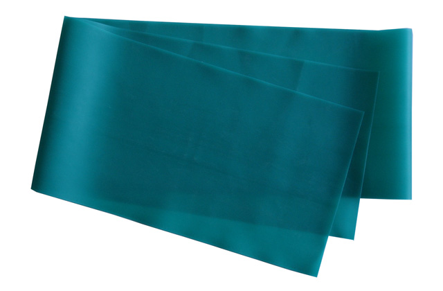 Stuha gumová na aerobic 120×15cm, o tloušťce 0,55mm-zelená. Jedná se o druhou nejsilnější stuhu. Slouží k lehkému posilování různých svalových partiích při aerobiku nebo při jiných příležitostech.