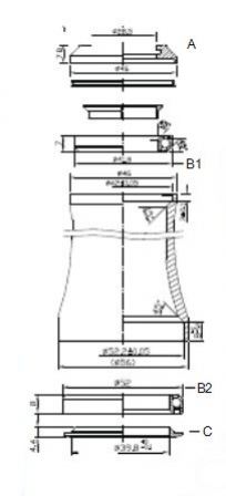 B2 - 44mm (vnější průměr spodního ložiska) C - 30mm (vnitřní kužel na vidlici)