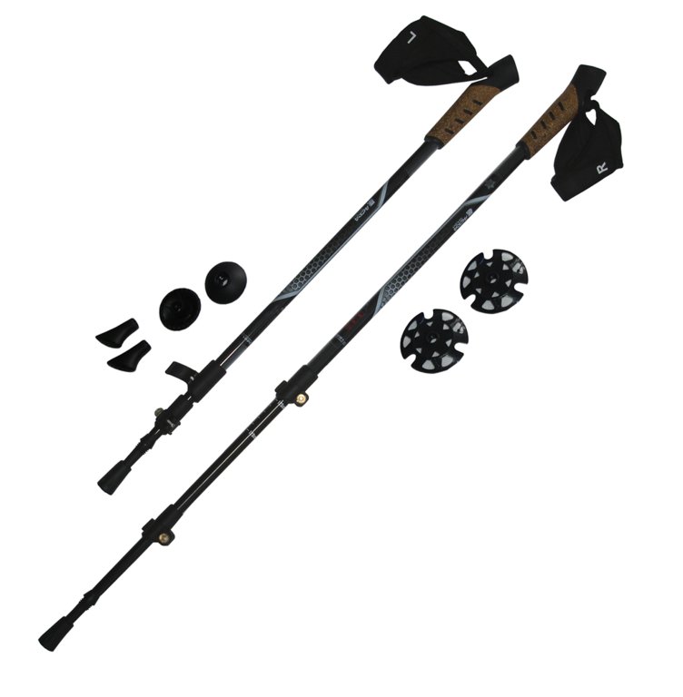 Teleskopické hole 3-dílné AL + 40% grafit, odlehčené , 72 - 140 cm. Korkové rukojeti jsou lehké a příjemné na držení. Rychloupínací mechanismus umožňuje rychlé nastavení potřebné délky holí. V balení je 1 pár na kartě s příslušenstvím - vyměnitelné kroužky a gumové koncovky. Hmotnost jedné hole je pouhých 280 gramů. Balení 1 pár na kartě v průhledné folii. HOLE NEMAJÍ ANTISHOCK, UPÍNACÍ SYSTÉM TO NEUMOŽŇUJE.