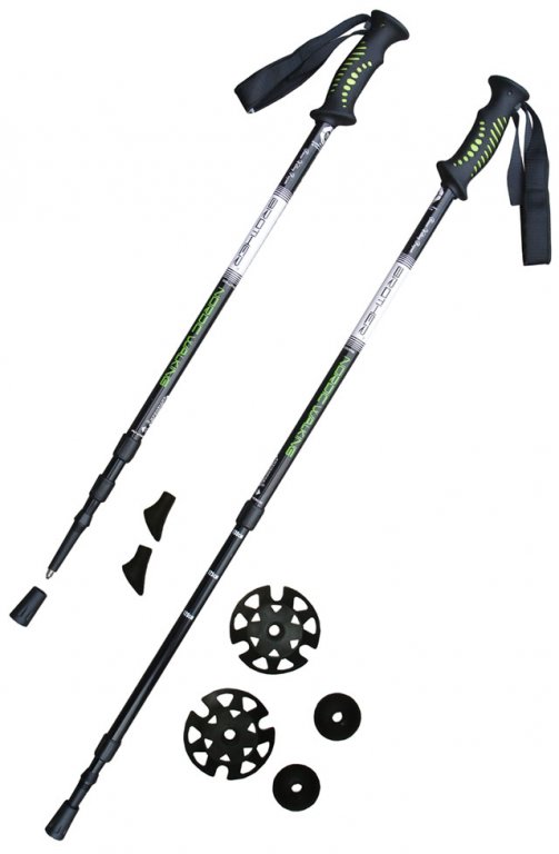 Teleskopické hole 3-dílné AL + 40% grafit, odlehčené , antishock, 72 - 145 cm. 1 pár na kartě s příslušenstvím - vyměnitelné kroužky a gumové koncovky. Hmotnost jedné hole je pouhých 295 gramů. Balení 1 pár na kartě v průhledné folii.