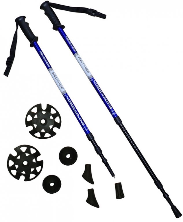 Teleskopické hole 3-dílné AL + grafit, NORDIC Walking, ANTISHOCK, 65 – 135 cm. 1 pár na kartě s příslušenstvím – vyměnitelné kroužky a gumové koncovky. Balení 1 pár na kartě + PE sáček. Hmotnost jedné hole je 300 g. K dispozici jsou barvy – tmavě červená, žlutá ( do zlata ), modrá.