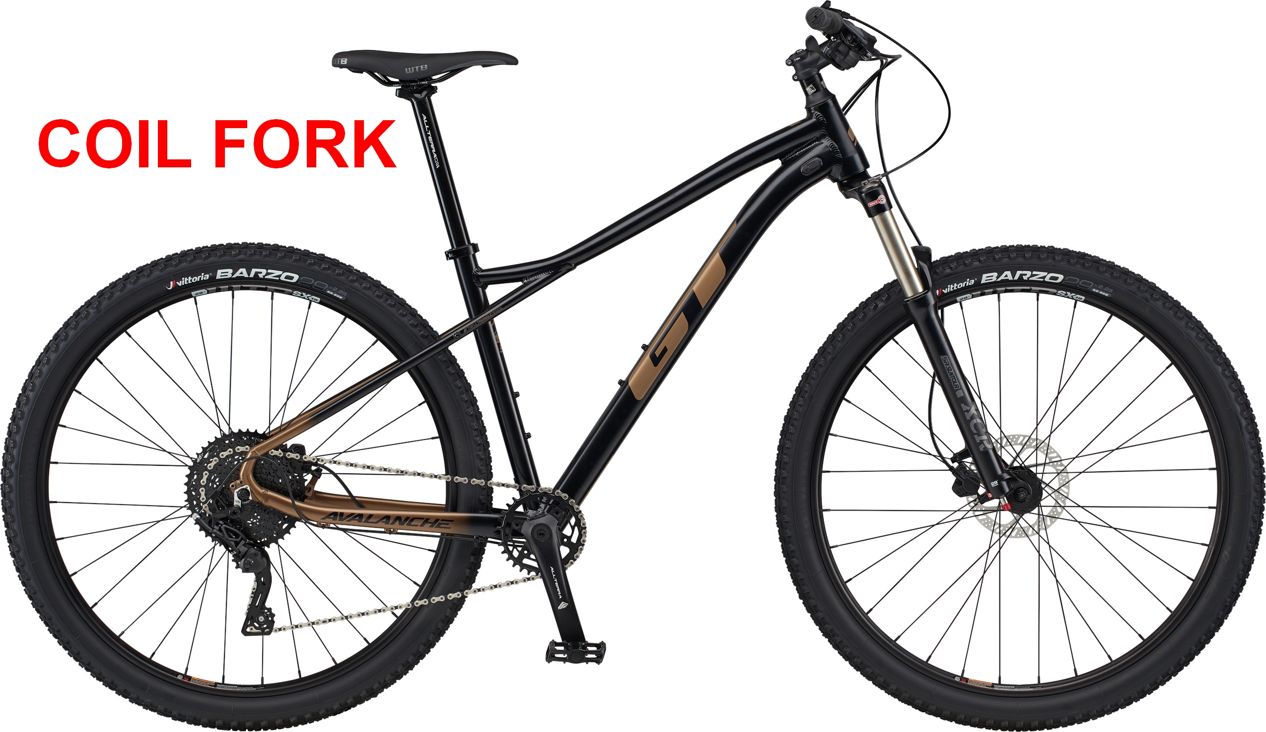 Horské kolo GT AVALANCHE 27,5" ELITE PRUŽINOVÁ VIDLICE (G27201M30P/BBQ) model 0. Kolo je vybaveno rámem GT 6061 T6 Aluminum Frame, Triple Triangle w/ Floating Seat Stays, Internal Cable Routing, Dropper Post Routing, Boost 141 Forged Drop-outs w/ Disc Brake Mounts, Zero Stack Tapered 1 1/8"- 1.5" Head Tube, 27.5/29" Wheels a vidlicí SR Suntour, 120mm, Hydraulic Lockout, Coil Spring, Rebound Adjust.