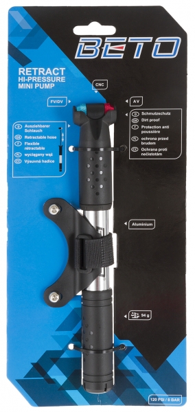 - Hliníková hustilka s plastovým držátkem - CNC obrobená hlava hustilky na vytažitelné hadici - S držákem a páskou se suchým zipem - Určeno pro ventily: AV-auto, FV-galuskový a DV-velo ventil - Hmotnost: 94g - Materiál: Al - Balení: karta Beto