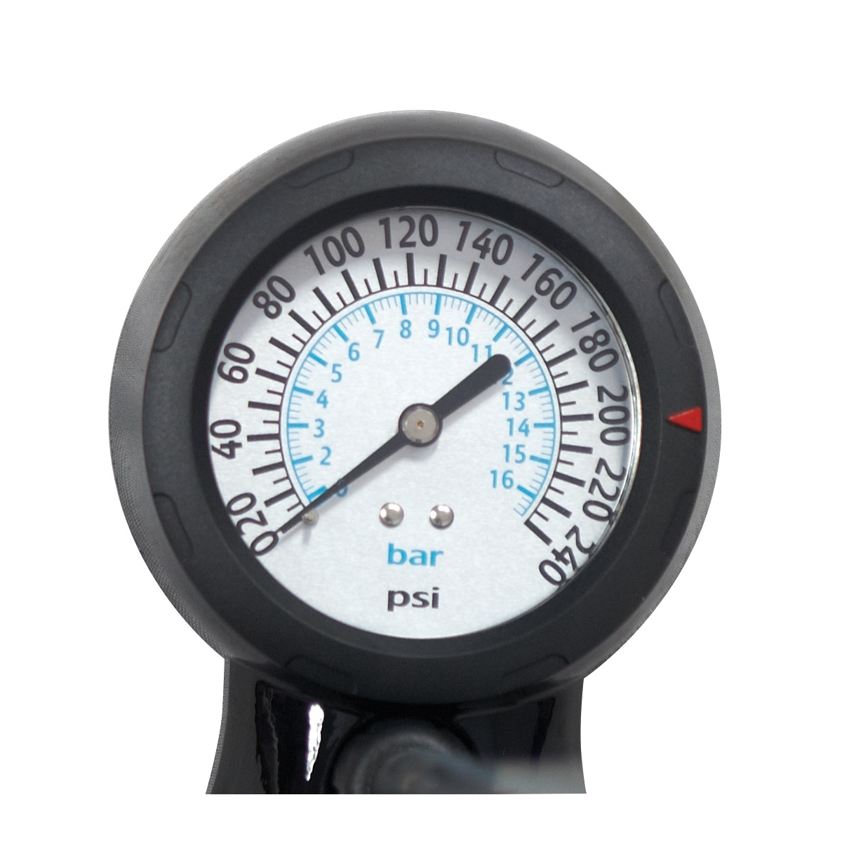Al hliníková hustilka s hliníkovou spodní částí s oboustrannou hlavicí na všechny typy ventilků (AV - moto, FV - galuskový, DV - klasický) s funkcí AIR-BLEED s manometrem do 240 PSI/ 16,5 bar výška: 68 cm, hmotnost: 1220 g určeno pro PROFI použití baleno v sáčku