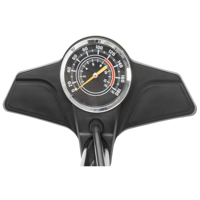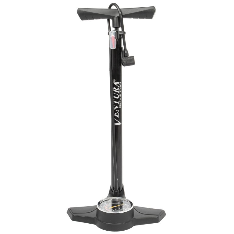 nožní pumpa Ventura s manometrem flexibilní dvojitá hlava (AV, FV, DV) s jehlou na míče a adaptérem na nafukovací matrace měkká madla protiskluzová úprava nožní plochy maximální tlak 120psi/ 8bar materiál: ocel originální balení