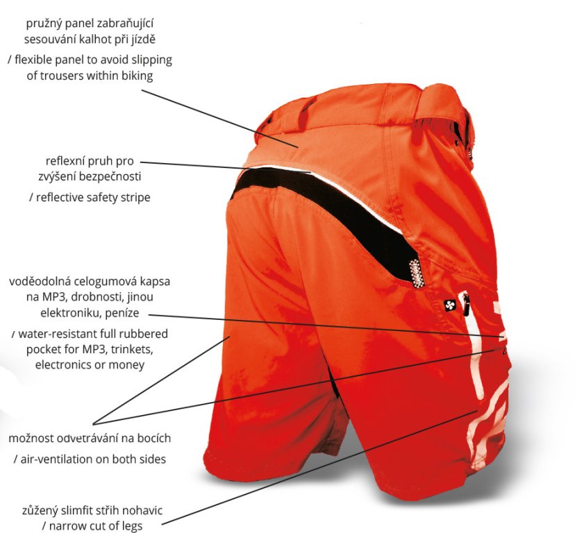 Zadní část s pružným panelem zvyšuje pohodlí a kalhoty nesjíždí dolů.