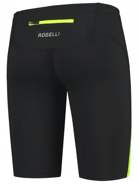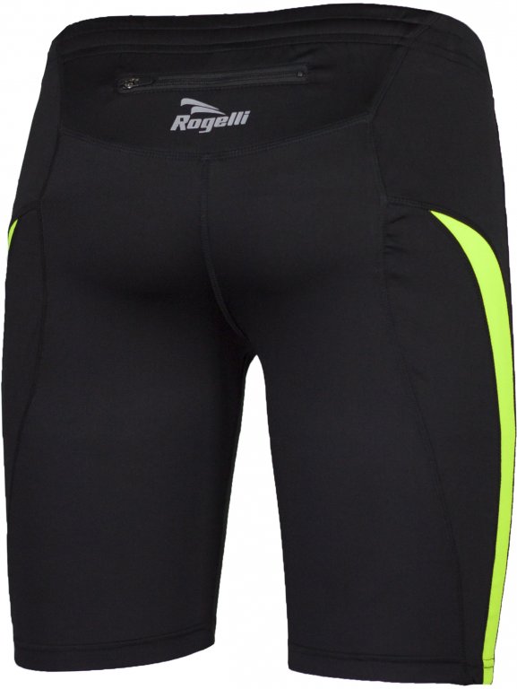 Pánské běžecké kraťasy s kontrastními akcenty na bočním panelu. Pas elastických kraťasů je ukončen širokou prošitou gumou doplněnou o provázek na vnitřní straně obvodu pasu. Na vnitřní straně lemu pasu naleznete přední kapsičku a větší kapsičku uzavíratelnou na zip pak v oblasti beder.