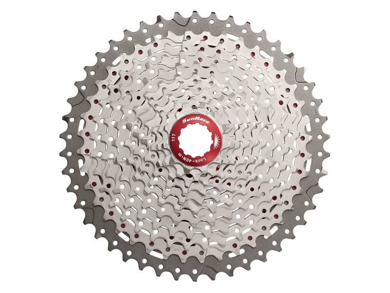 Výrobce: SunRace Model kazety: CSMX8EAZ Počet pastorků: 11 (10 ocelových, největší ALU 7075) Rozsah pastorků: 11–13–15–18–21–24–28–32–36–40–46 Hmotnost: 465 g Materiál: ocel, Al Barva: stříbrná