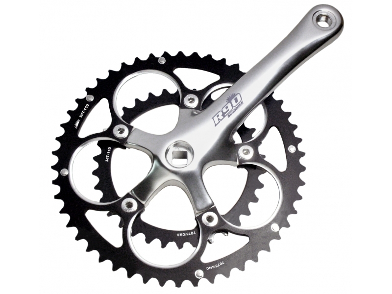 Silniční kliky SunRace FCR9F délka klik: 170 mm počet zubů: 50/34 typ: 4-hran určeno pro 9-rychlostní kazety hmotnost: 600 g materiál: Al barva: černá určeno pro odborný servis