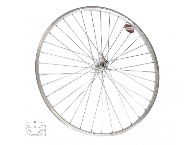 Ráfek: Remerx RMX219 28"- 622 stříbrný Šířka ráfku: 19mm Počet děr ráfku: 36 Dráty: CnSpoke stříbrné pozinkované Náboj: Union Al přední rychloupínací s kuličkovými ložisky Kolo je strojně předcentrováno, nutné ještě docentrovat.