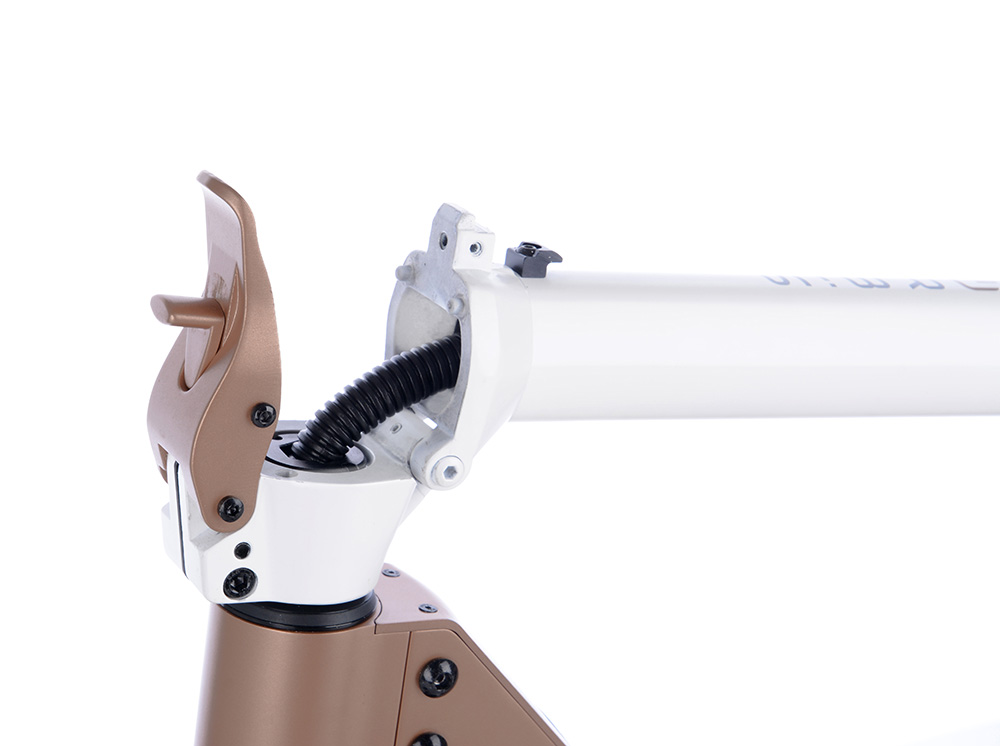 Tato e-koloběžka kombinuje 3 způsoby brzdění: elektronický, bubnový a kotoučový. V předním kole je umístěna bubnová brzda, jejíž brzdný účinek je snadno nastavitelný pomocí matice bez nutnosti použít nářadí. O brzdění zadního kola se stará kotoučová brzda s kvalitními třmeny v kombinaci s elektronickou brzdou motoru.