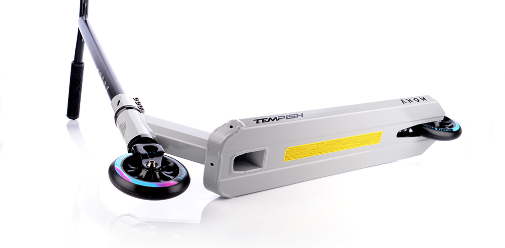 Freestyle koloběžka TEMPISH ANOM II odolá náročnějším trikům a je vhodná pro jízdu jak na ulici, tak ve skateparku i pro pokročilého jezdce. Konkávní deska má na spodní straně výřez pro snížení hmotnosti.