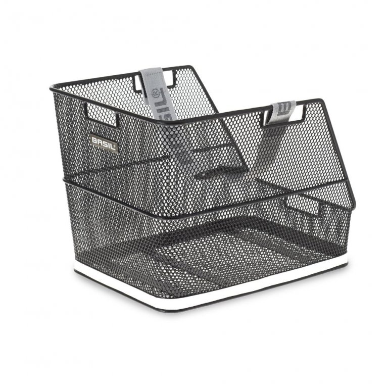 Košík na nosič, upevnění pomocí přiloženého montážního setu. Úložný prostor s odnímatelným popruhem. Reflexní proužky na spodní straně pro extra viditelnost. Materiál: ocel. Maximální nosnost 10 kg. Rozměry: 38x31x27 cm. (vnější rozměr).