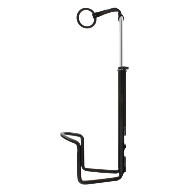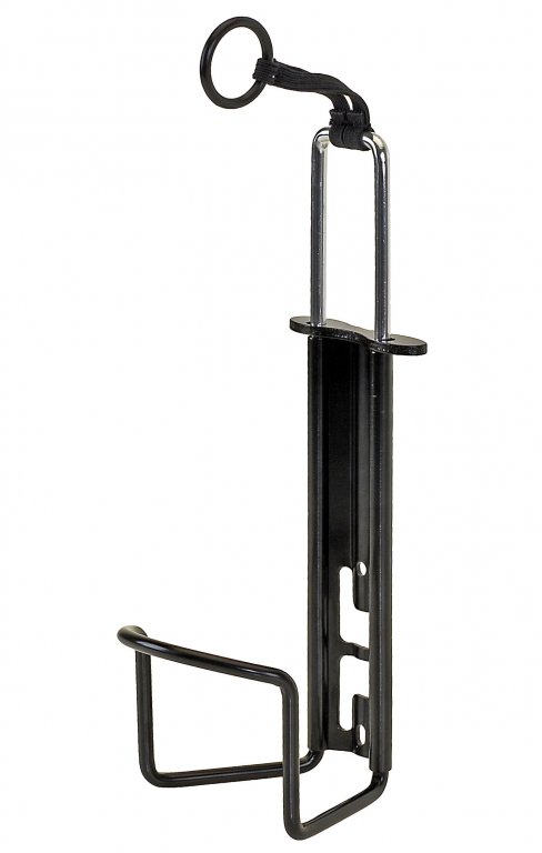 Košík na lahev s nastavitelnou výškou Vhodný i pro PET lahve do 1,5 l Pojistný kroužek pro udržení lahve Materiál: Al Hmotnost: 31 g Průměr: 88 mm Barva: černá Balení: servisní v sáčku