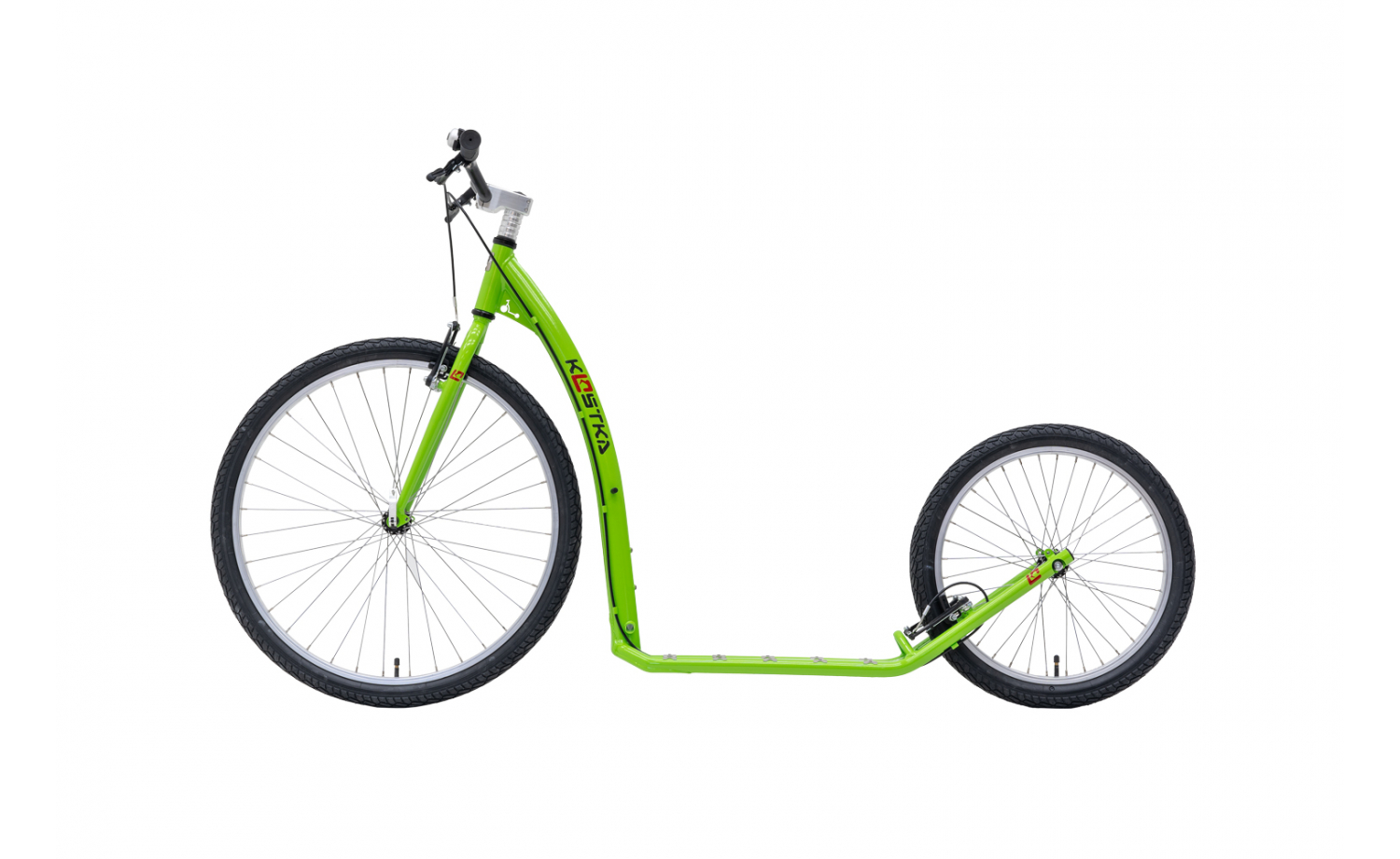 Koloběžka s velkými koly, pro začátečníky Rozdíly oprotí standardní koloběžce KOSTKA TOUR FUN (G6) - náboje SHIMANO - pláště Mitas Walrus - ocelová řídítka (FBH 680-50 St) - nové metalické barvy (Satin Kiwi - matná, Strawberry - lesklá) Pokud s koloběhem teprve začínáte, a nejste si proto úplně jisti, zda vás tento sport chytne a nepustí (věříme, že ano), je koloběžka KOSTKA TOUR FUN správná volba. Na to, jaké možnosti nabízí, je totiž poměrně levnou koloběžkou pro dospělé. Jsme si 100% jistí, že od ní dostanete přesně to, co jakožto začínající koloběžkách potřebujete. Její konfigurace totiž rozhodně není nijak ošizená. Koloběžka TOUR FUN stojí na velmi kvalitním rámu, který je optimalizován pro příjemnou a pohodovou jízdu. Pohoda, klídek, koloběh, to je oč tu koloběží... Podobně jsou na tom jednokomorové ráfky, nazuté do plášťů Kenda, na kterých si zkrátka a dobře ujedete. Ale abyste si neujeli zase až moc, můžete kdykoliv zpomalit za pomocí účinných véčkových brzd Promax. Nášlap této koloběžky s velkými koly 26"/20" je ze spodní strany opatřen výztuhou a speciálními sváry, které zpevňují rám a zároveň chrání jeho nejvíce namáhaná místa při styku s nerovnostmi. Až budete chtít koloběžce ukázat vzdálenější destinace, jistě oceníte, že náboje kol disponují rychloupínacím systémem upevnění osy. Díky tomu je možné kola snadno a rychle odmontovat, a váš stroj tak snáze naložit do kufru automobilu. Jak jsme slíbili na začátku, koloběžka pro dospělé KOSTKA TOUR FUN je zkrátka výborný stroj za přijatelnou cenu, který do puntíku splní vaše očekávání. Odrazte se vstříc objevování krás koloběhu a světa, jenž nás obklopuje. Určitě této vášni zcela podlehnete.