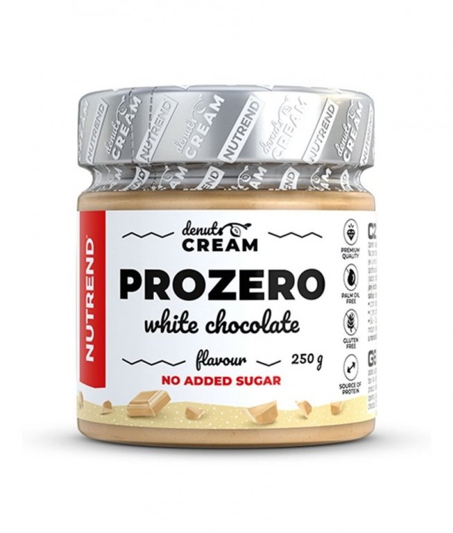 Složení: jemný arašídový krém s bílou čokoládou, bez přidaného cukru, se sladidlem: arašídy 75 %, bílá čokoláda 25 % (sladidlo maltitol, sušené mléko, kakaové máslo, emulgátor sójový lecitin, aroma). Může obsahovat stopy ořechů.