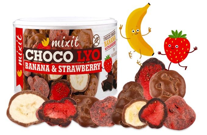 Takové banánky a jahody v čokoládě jste ještě nekřupali. Zralé a slaďounké banány s jahodami jsme nejdříve proměnili v křupavou dobrotu procesem lyofilizace, tedy sušením mrazem a pak jsme je obalili v pořádné vrstvě mléčné čokolády. Ochutnejte dokonalé spojení tradičních chutí bez zbytečných umělých přísad a bez palmového oleje.