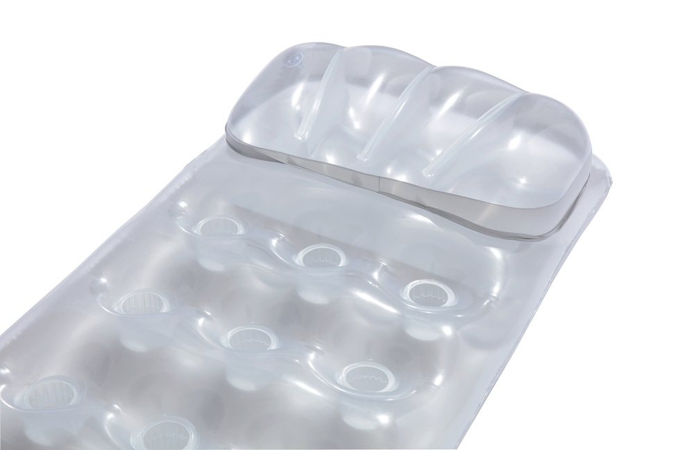 Nafukovací lehátko stříbrné má zvýšený nafukovací polštářek, který umožňuje pohodlné ležení. Jeho rozměry jsou 188 x 71 cm.