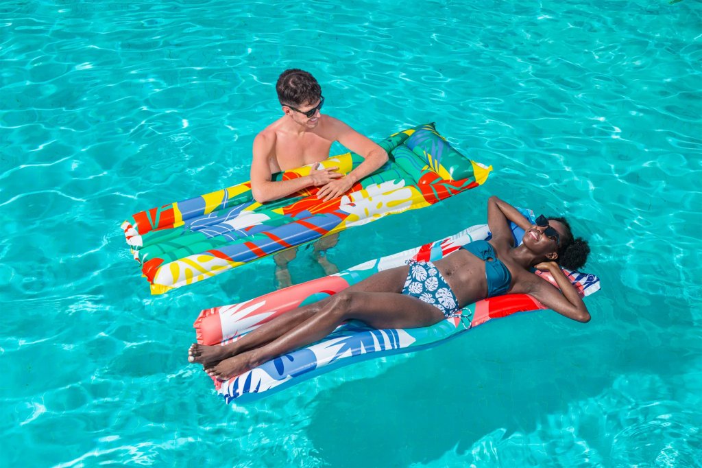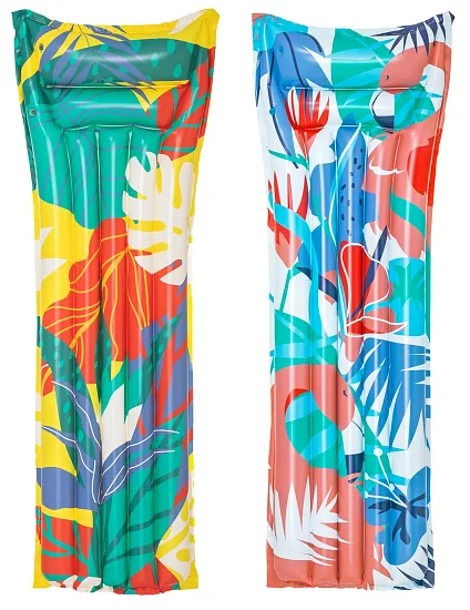 Nafukovací lehátko s barevným potiskem květinovými vzory a s nafukovacím polštářem má rozměry 183 x 69 cm. Lehátko má zesílené stěny pro větší odolnost proti poškození.