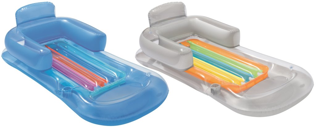 Nafukovací lehátkové křeslo King Kool o rozměrech 161 x 84 cm je vybaveno opěrkami pro ruce a záda, zvýšenou částí pro opření hlavy, a obsahuje také praktický otvor na láhev. Toto lehátko poskytuje vysoký komfort při odpočinku na vodě s maximální nosností 90 kg. Upozornění: Před použitím je důležité zkontrolovat, že plocha pod lehátkem je zbavena ostrých předmětů, jako jsou kamínky nebo větvičky, které by mohly lehátko poškodit.