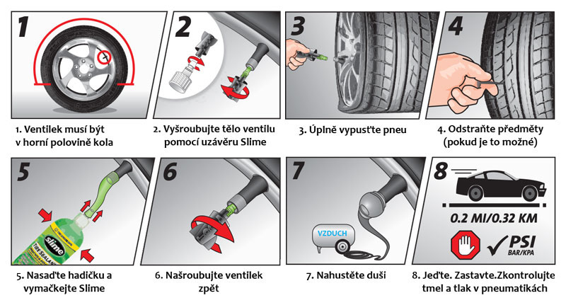 Kapalina Slime určená pro bezdušová kola není určena pro kola dušová a obráceně.