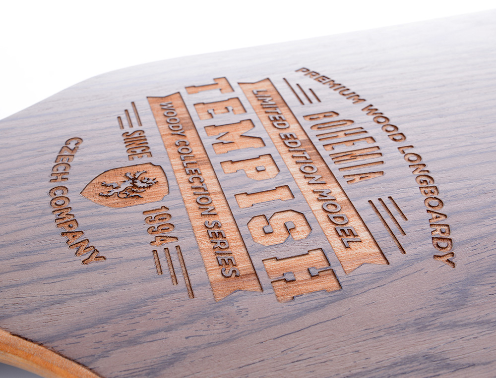 Tato kolekce je inspirována Čechy a Moravou. Tento longboard je vyroben z různých vrstev dřeva- kanadský, ruský javor a tenká vrstva třešňového dřeva s laserovým řezáním.