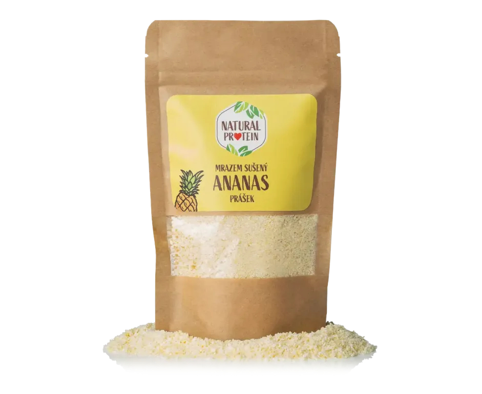 Představte si, že vezmete čerstvý ananas a odparíte z něj 95 % vody. To se pak veškerá chuť, vůně i živiny smrsknou do křehkých křupavých kousků, které se (na rozdíl od čerstvých plodů) jen tak nezkazí a můžete si je dopřát kdykoli a kdekoli. My jsme sušený ananas namleli na jemný prášek pro rychlé a praktické použití.