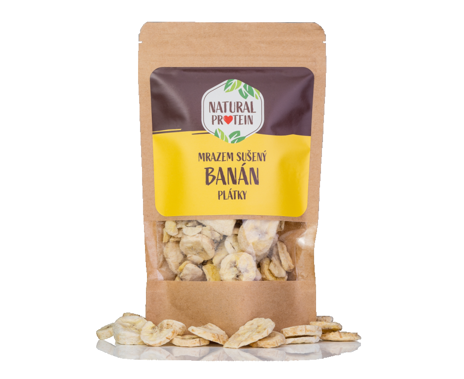 Vyzkoušejte plátky mrazem sušených banánů a objevte novou dimenzi zdravého mlsání ? Mrazem sušené banány si zachovávají až 95% vitamínů a minerálů oproti banánům čerstvým. Sušení mrazem, neboli lyofilizace, zbaví banány vody a ty jsou tak úžasně křupavé.