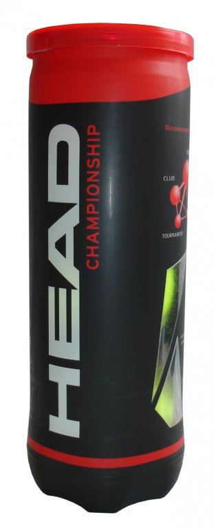 Tenisové míčky HEAD Championship - 3 ks v dóze. Velmi kvalitní míče pro závodní hru. Jedná se o tlakované míče vhodné na všechny povrchy, odolné proti opotřebení, rovnoměrný odskok, velmi dobrá trvanlivost a dobré herní vlastnosti.Tenisový míč HEAD CHAMPIONSHIP je snadno hratelný míč a je určený pro klubové hráče.