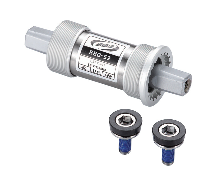 Kované vřeteno pro čtvercový střed JIS. Double-utěsněný systém. Za studena kované hliníkové misky. Dutá CrMo osa. Závit BSA: 1.37 "x 24 zubů. BBO-52: délka vřetene: 115 mm. Šířka středu 68 mm.