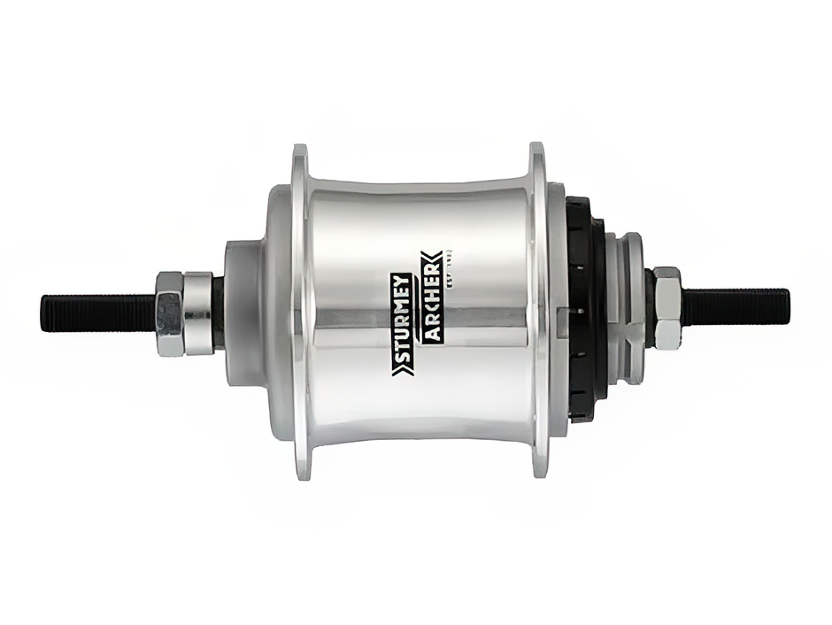 2-rychlostní automatický náboj Sturmey-Archer A2 s rozsahem 137%.