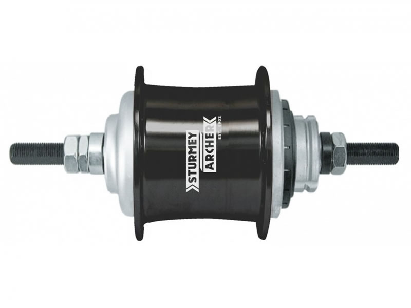 3-rychlostní volnoběžný náboj Sturmey-Archer S-RF3 s rozsahem 177%.