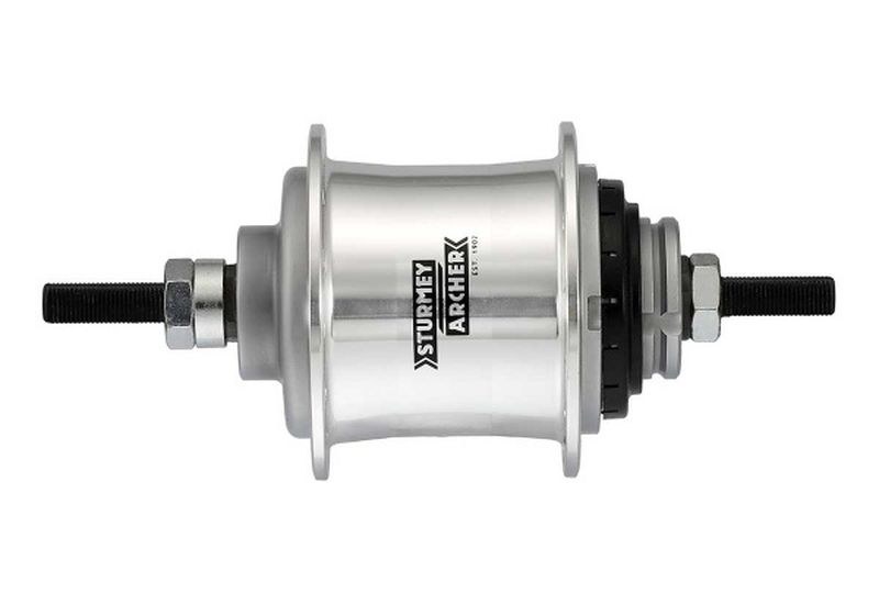 3-rychlostní volnoběžný náboj Sturmey-Archer S-RF3 s rozsahem 177%.