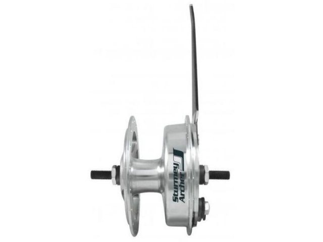 Přední náboj Sturmey-Archer XL-FD s bubnovou brzdou 90 mm Obsahuje průmyslová ložiska Počet děr: 36 Šíře náboje: 100 mm Délka osy: 136 mm Průměr osy: 9 mm Hmotnost: 970 g Materiál: Al Barva: stříbrná
