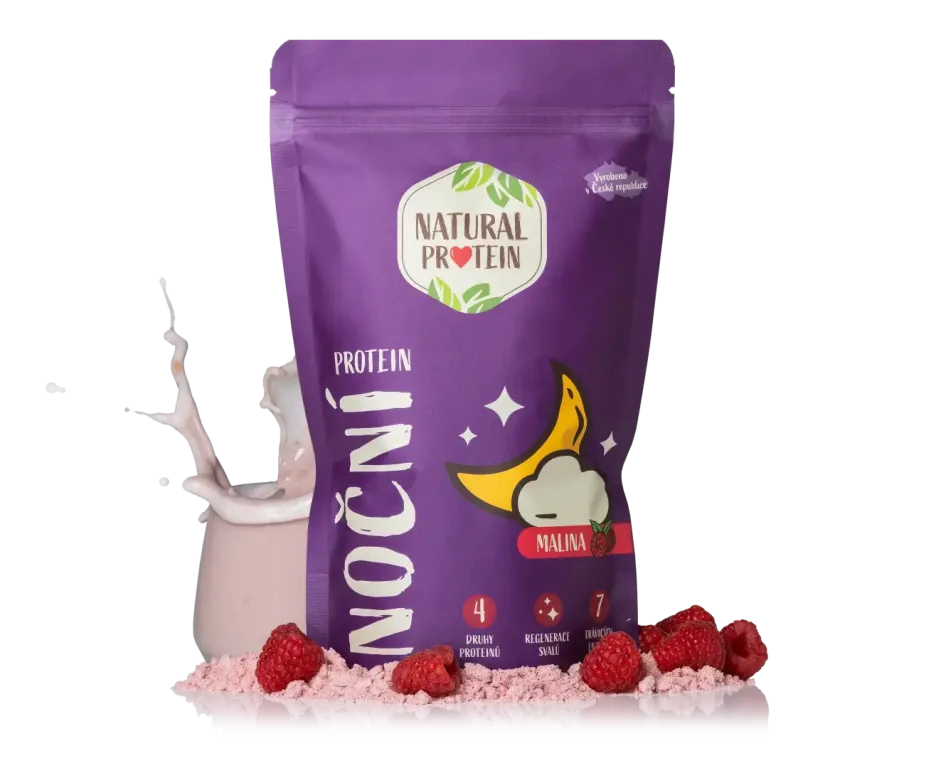 Jak během spánku neztrácet svalovou hmotu? Nakrmte tělo bohatou porcí čtyř kvalitních bílkovin. Micelární kasein se uvolňuje postupně 8 hodin, a tak svaly dostávají důležitou dávku aminokyselin celou noc. Protein zabrání nočnímu odbourávání svalů (katabolismu) a postará se o jejich správnou regeneraci a růst. 7 trávicích enzymů pak pomůže bílkoviny v těle lépe strávit a využít. Fajnšmekři ocení božskou chuť mrazem sušených malin a čistou přírodní recepturu bez umělotin. Stačí rozmíchat ve vodě nebo mléce. Ideálka při dietě a pro sportovce či seniory, kteří nechtějí ztrácet svaly.