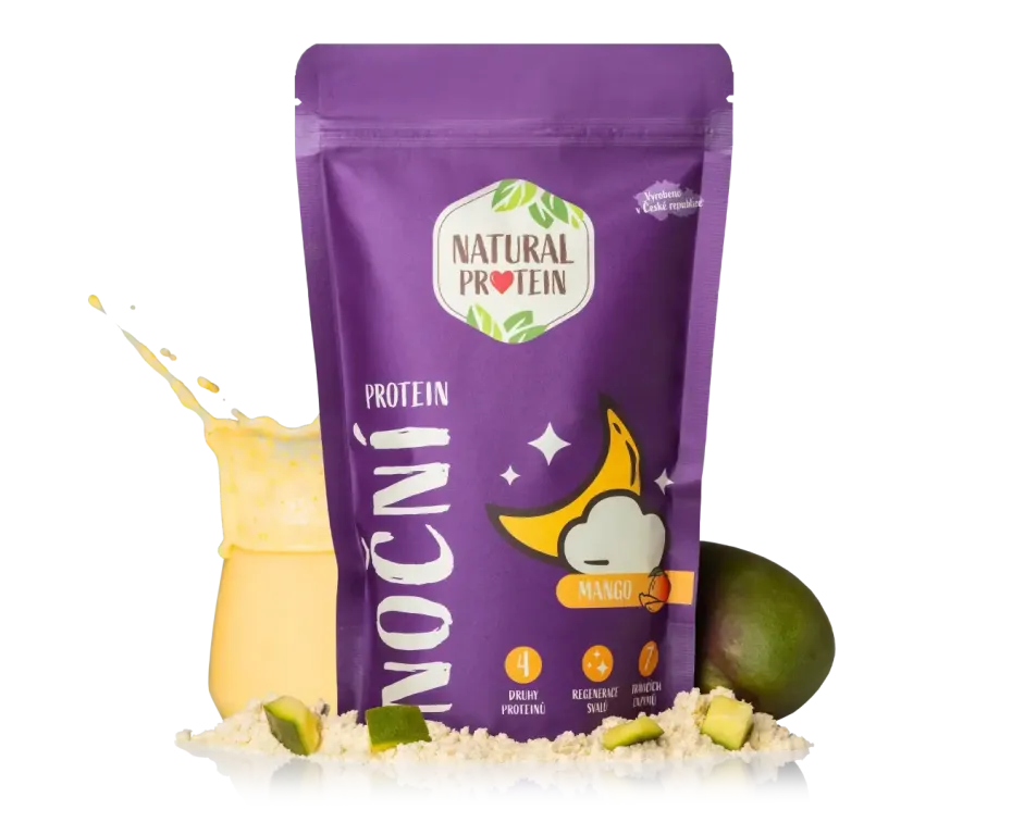 Jak během spánku neztrácet svalovou hmotu? Nakrmte tělo bohatou porcí čtyř kvalitních bílkovin. Micelární kasein se uvolňuje postupně 8 hodin, a tak svaly dostávají důležitou dávku aminokyselin celou noc. Protein zabrání nočnímu odbourávání svalů (katabolismu) a postará se o jejich správnou regeneraci a růst. 7 trávicích enzymů pak pomůže bílkoviny v těle lépe strávit a využít. Fajnšmekři ocení božskou chuť mrazem sušeného manga a čistou přírodní recepturu bez umělotin. Stačí rozmíchat ve vodě nebo mléce. Ideálka při dietě a pro sportovce či seniory, kteří nechtějí ztrácet svaly.