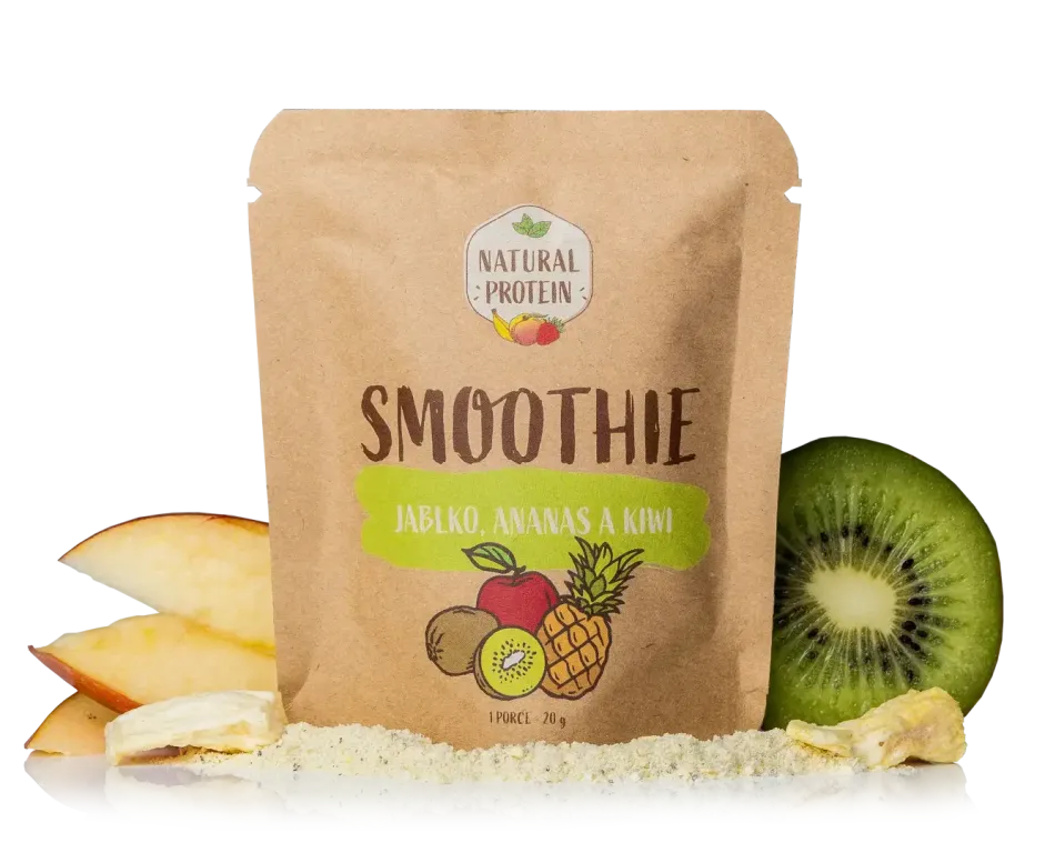 Smoothie ananas, kiwi a jablko od NaturalProtein je ten nejlahodnější drink, který vás skvěle osvěží a posilní. Obsahuje totiž pouze přírodní mrazem sušený ananas, kiwi a jablko. Uchovává si tak všechny vitamíny, minerály a antioxidanty. Nápoj je lehce oslazen stévií.