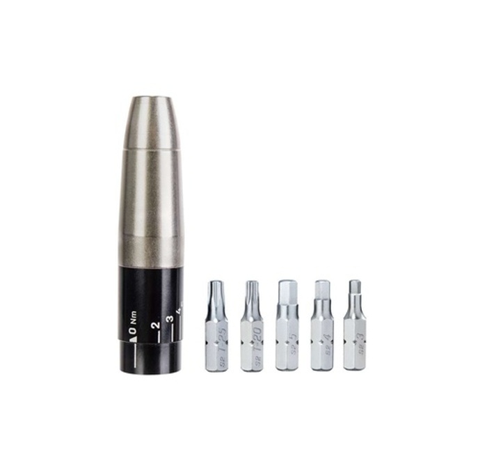 Momentový nástavec 2-6Nm se sadou základních bitů zamezující poškození, vzniklému přetažením, například drahých karbonových částí.