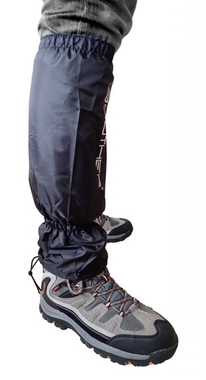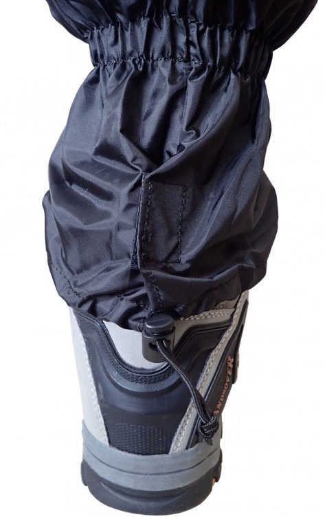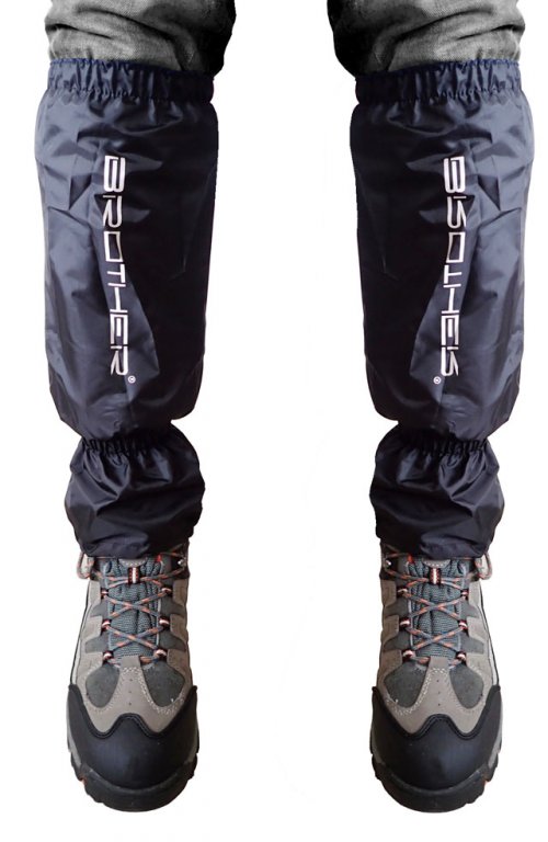 Textilní turistické návleky na boty. Použitý materiál je nylon 210T s voděodolným PE potahem uvnitř návleku. Dodání v černé barvě s potiskem BROTHER. Návlek má na výšku 43 cm, průměr návleku je 15 cm. Návlek má dvě pevné gumy a jednu stahovací šňůru, kterou se návlek upevní na lýtko nohou podle potřeby. Universální velikost. Balení v sáčku s visačkou obsahuje 1 pár návleků.
