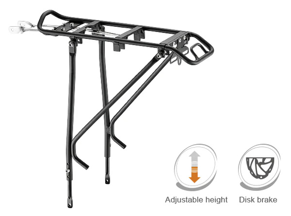Kompatibilní se systémy MIK, PakRak a G-2 clip-on bag, pro kola 26"–29", horní plocha umožňuje montáž připínacích tašek MIK nebo PakRak, materiál AL TIG svařovaný, nosnost 25kg, držák na zadní světlo, hmotnost 800g, rozměr: výška 42,4cm, délka 37,7cm, šířka 12,1 cm