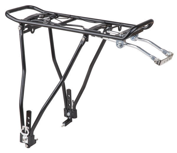 zadní universální nosič na disc brzdy s klapákem ,26"-29",masivní duté duralové trubičky 10mm , stavitelná výška,nosnost 25 kg, kloubový upínací systém 3D, držák na odrazku (blikačku), hmotnost 820g, rozměr horní plochy 39x13cm